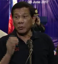 President Rodrigo Duterte stresses a point during his visit to troops in a military camp in Davao on Thursday, June 29. (RTVM video)
