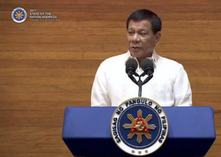 (File photo) President Rodrigo Duterte during his second State of the Nation Address before Congress on Monday, July 24, 2017.  The President greeted Iglesia Ni Cristo members all over the world on the 103rd anniversary of the Church, commending the leadership of INC Executive Minister Brother Eduardo V. Manalo, which he said empowered Church members in making a “positive impact” to society.