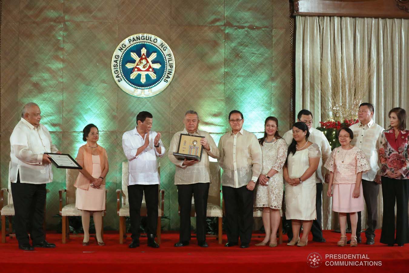 House Speaker and former President Gloria Macapagal Arroyo, together with Executive Secretary Salvador Medialdea, assisted President Duterte during the awarding ceremony.