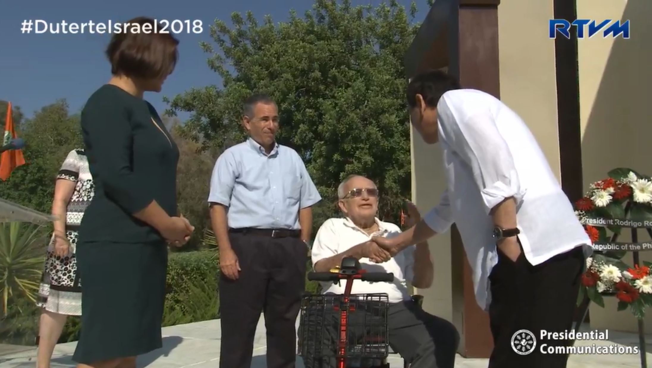 (Eagle News) – One of those who escaped from the Holocaust who sought refuge in the Philippines in 1941 was among those who welcomed Philippine president Rodrigo Duterte when he visited the “Open Doors Monument” in Israel at the end of his four-day visit in the Jewish State.