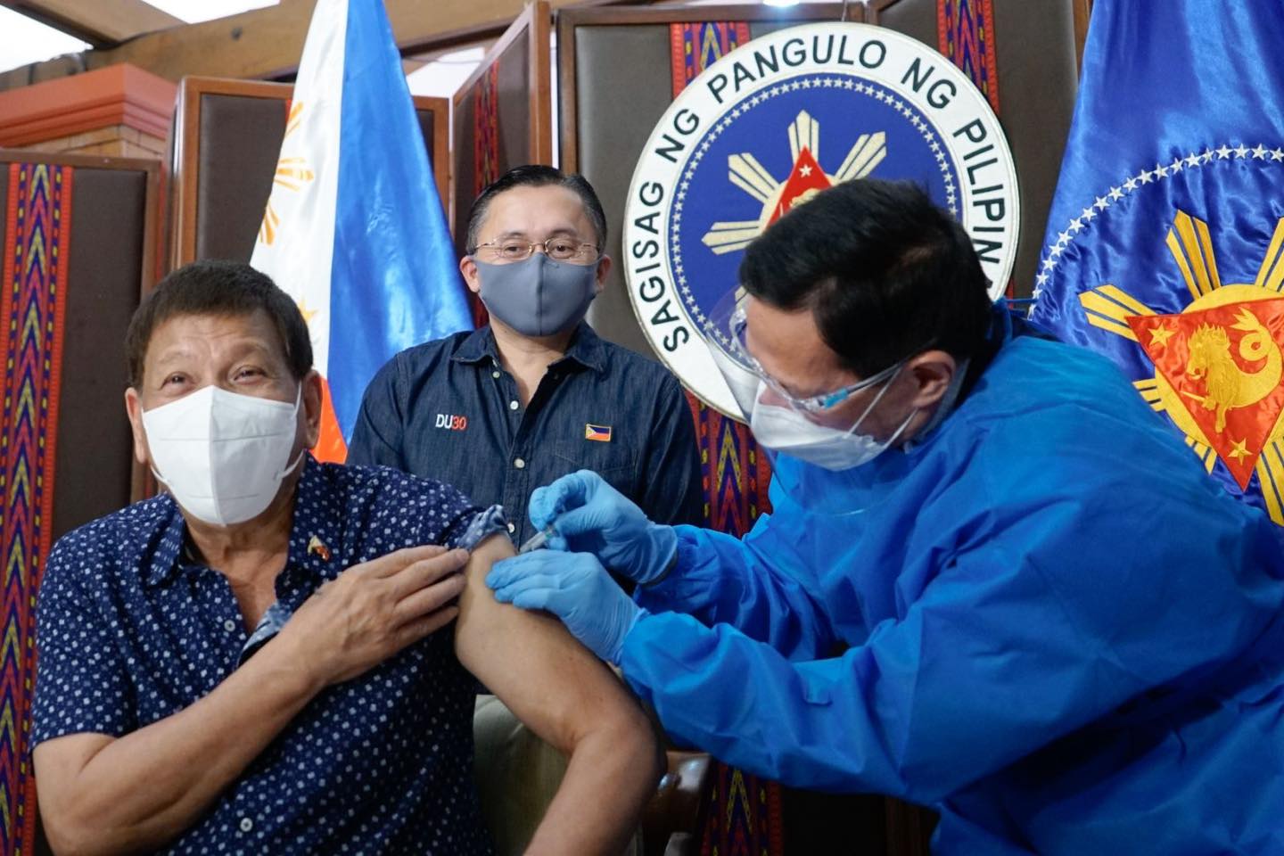 Pictures posted on Senator Bong Go’s Facebook account showed Health Secretary Francisco Duque III administering the dose.