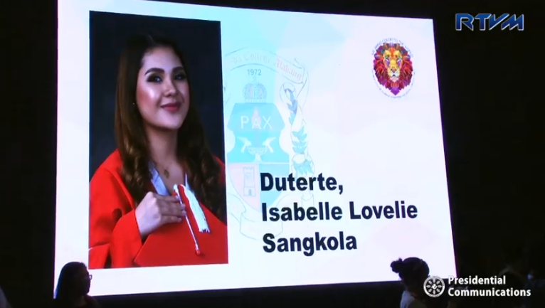 (Eagle News) — President Rodrigo Duterte attended the graduation rites of his granddaughter Isabelle Lovelie Duterte on Thursday morning, May 17, at the Philippine International Convention Center (PICC).
