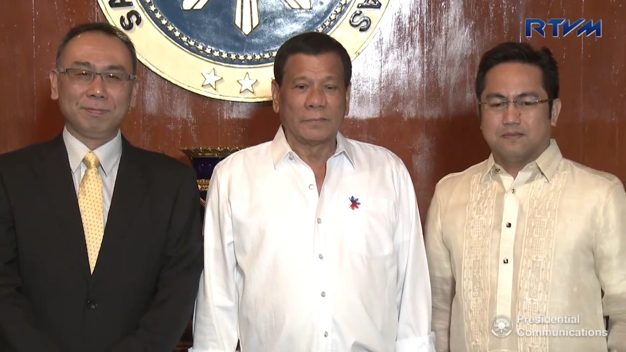 President Rodrigo “Rody” Duterte poses with Taiwanese investors in a photo opportunity at the President’s Hall in Malacañang on Monday, May 8, 2017.