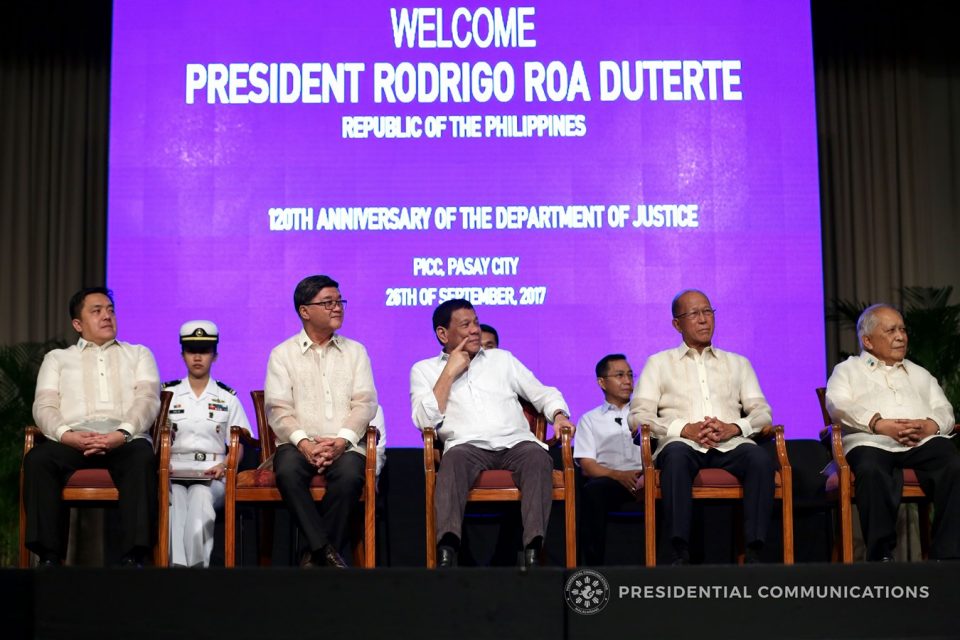 The President was accompanied by Justice Secretary Vitaliano Aguirre II, Defense Secretary Delfin Lorenzana, and Presidential Legislative Liaison Office Secretary Adelino Sitoy during the event in Pasay City