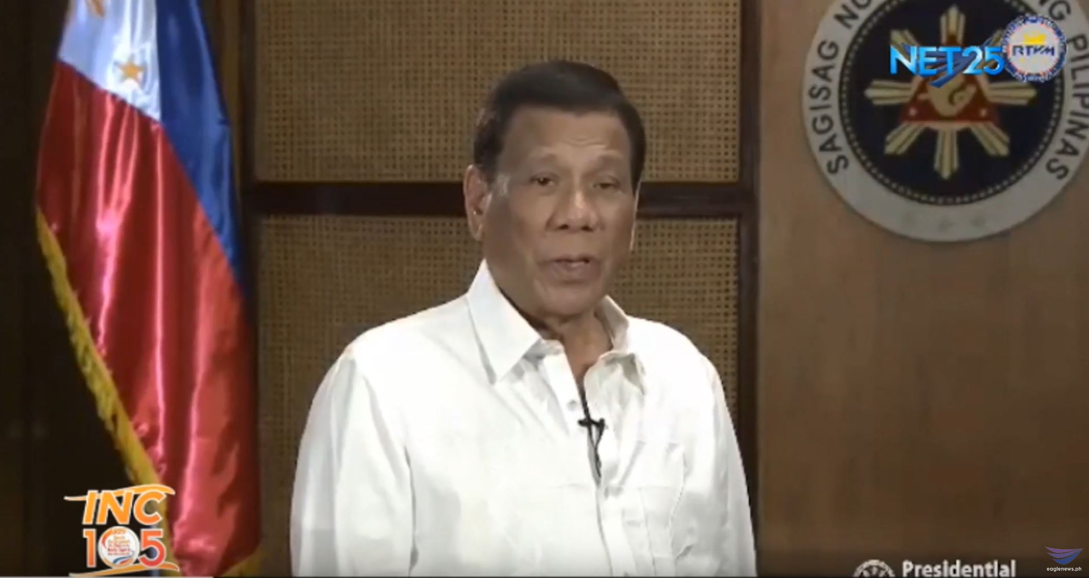 (Eagle News) – President Rodrigo Duterte conveyed his heartfelt greetings to the Iglesia Ni Cristo (Church Of Christ) on its 105th anniversary on Saturday, July 27, recognizing how the INC “has stood as a shining beacon of faith and inspiration” in the country.