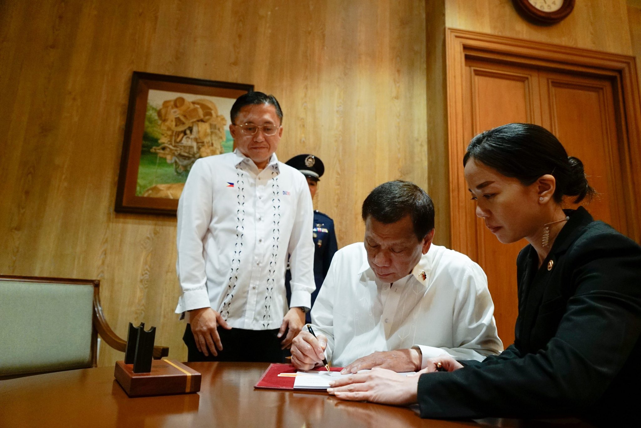 According to a photo release from Malacañang, the President signed the Salary Standardization Law of 2019 on Wednesday in the Palace.