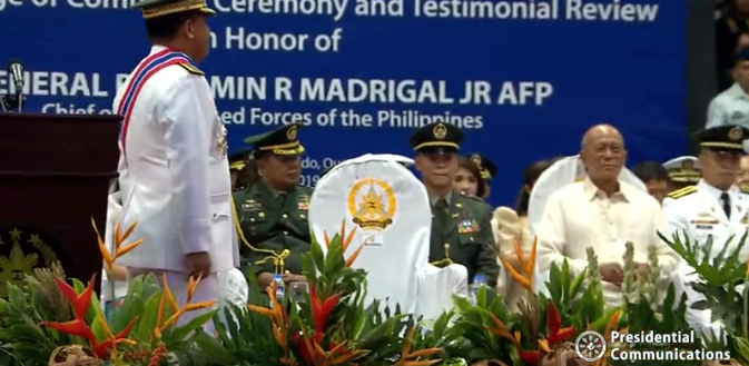 During the ceremony, General Benjamin Madrigal Jr. was replaced by Lieutenant General Noel Clement at the helm of the AFP.