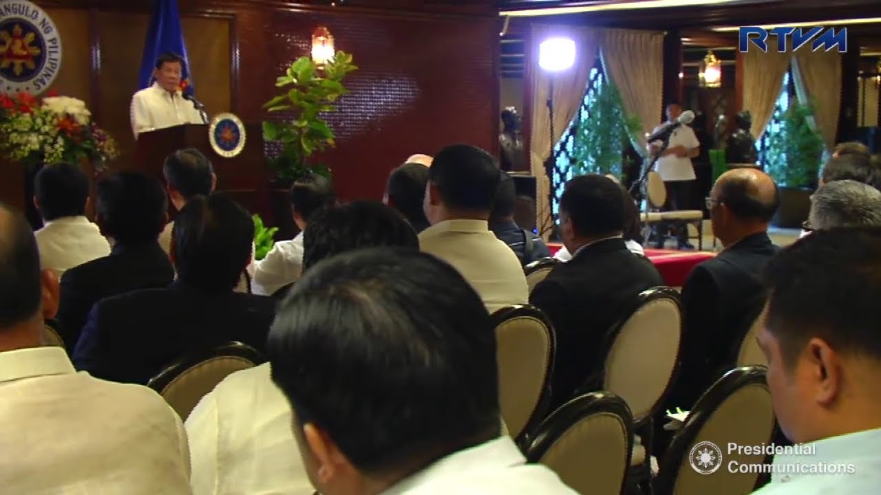 President Rodrigo Duterte speaks with the leaders and stakeholders of mining companies in the country during a dialogue at the Heroes Hall in Malacañang on Thursday, August 3, 2017.
