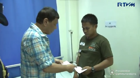Duterte visited Lt. Col. William George Cordova, battalion commander; 1LT Joe Mari S. Landicho; Sgt. Randy G. Balutoc; Sgt. Samian B. Calangan; Cpl. Crispin S. Agoy; Cpl. Brainard T. Dumondon; Cpl. Ronald Allan B. Lorenzo; Cpl. Jonathan D. Mukay; Cpl. Mariel J. Reboredo; Cpl. Ruben G. Olaso; and PFC Jomar C. Avero.
