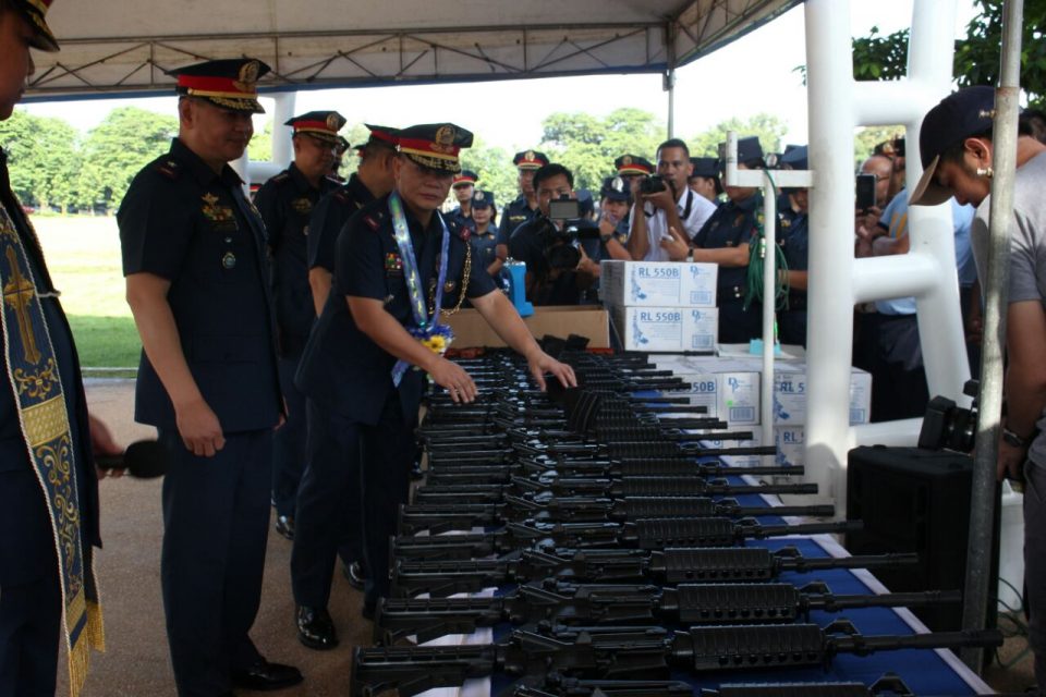 CALAMBA CITY, Laguna (Eagle News) – Nasa 100 M-16 armalite at isang M-14 (sniper) rifle ang tinanggap ng Philippine National Police Region 4A noong Lunes, July 17.