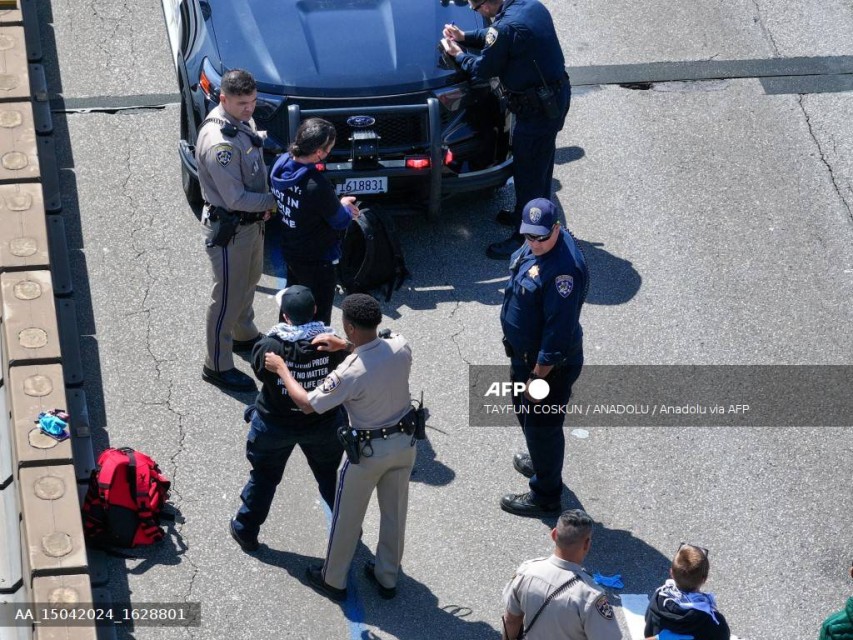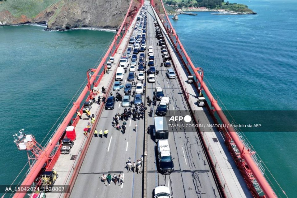 LOS ANGELES, April 15, 2024 (AFP) – Pro-Palestinian demonstrators blocked San Francisco’s Golden Gate Bridge on Monday, completely halting traffic for hours as part of a coordinated day of action against Israel’s war in Gaza.