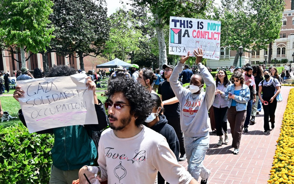 At the University of Southern California in Los Angeles, 93 people were arrested for trespassing on Wednesday, authorities said they were cancelling events at the May 10 graduation ceremony.