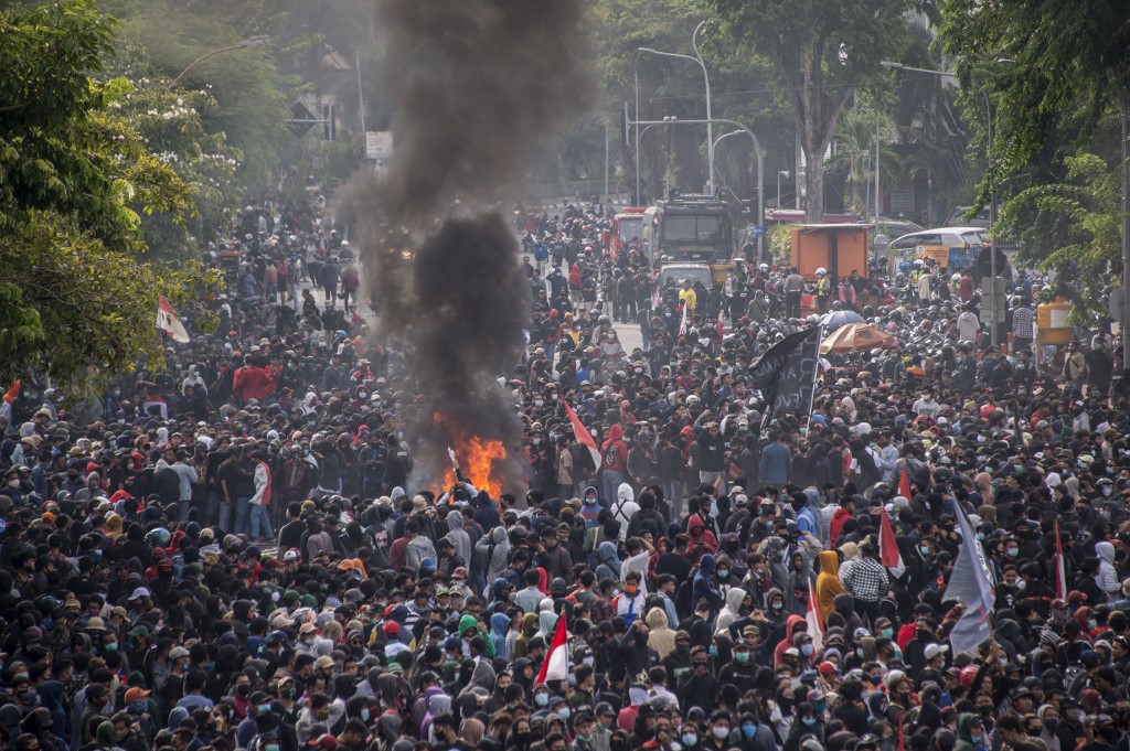 JAKARTA, Indonesia (AFP) — Thousands of protesters set fire to barricades and police posts in the Indonesian capital Thursday as opposition mounted to a controversial new investment law critics say will harm labour rights and the environment.