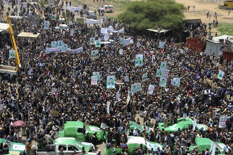 SAADA, Yemen (AFP) — Thousands of Yemenis vented anger against Riyadh and Washington on Monday as they took part in a mass funeral for children killed in an air strike by the Saudi-led coalition.