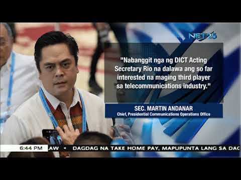 “Nabanggit nga ng DICT acting secretary Rio na dalawa ang interesado na maging third player sa telecommunications industry. Una, iyong China Telecom, plus iyong consortium na hindi pa ho nababanggit; at pangalawa pong nasa listahan ay iyong grupong PT&T ay iyong kanilang partner na Korean Telecom Company. So, we can really see that even just the announcement itself ay nahikayat po iyong dalawang telco giants na ito na mag-invest ng pera para pagandahin pa iyong kanilang serbisyo,” pahayag ni Andanar.