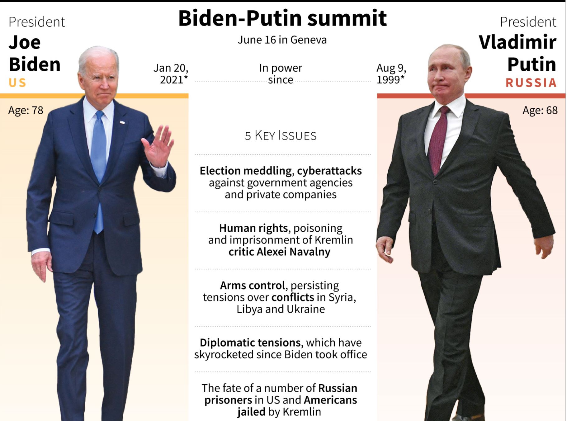 Biden plans to raise a range of US complaints, including over purported Russian election interference and hacking, in the summit with Putin on Wednesday in Geneva at the end of the new president’s first foreign trip.