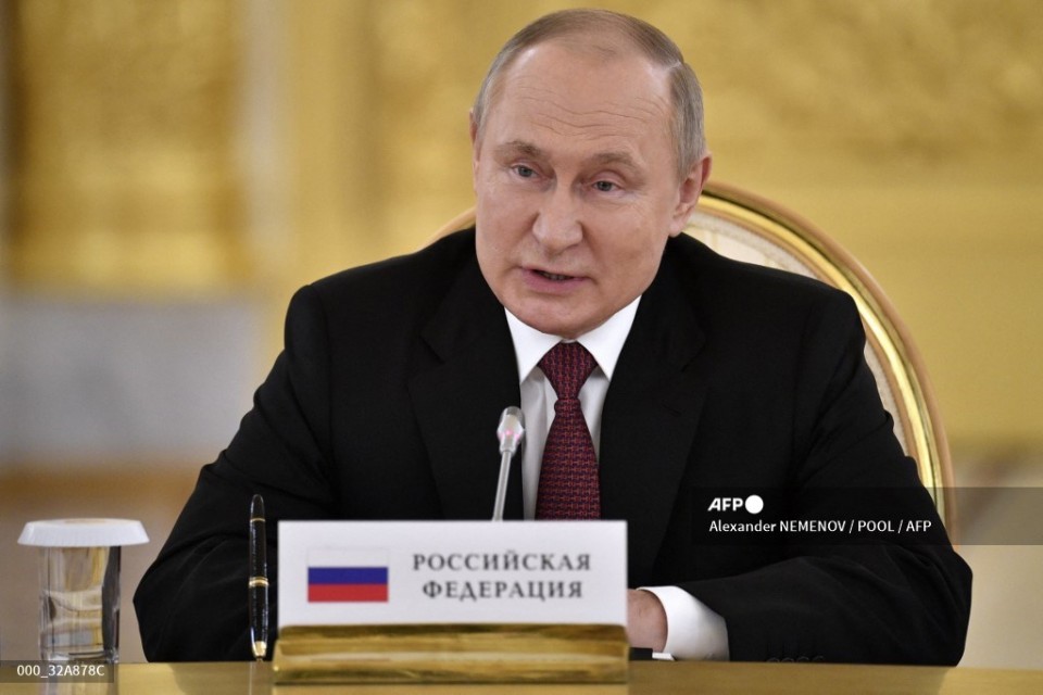 Russian President Vladimir Putin attends a meeting of the leaders of the Collective Security Treaty Organization (CSTO) member states at the Kremlin in Moscow on May 16, 2022. (Photo by Alexander NEMENOV / POOL / AFP)