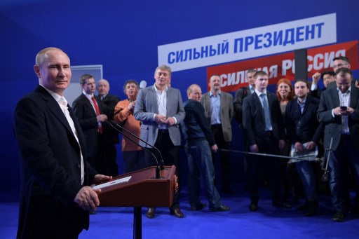 MOSCOW, Russia (AFP) — Vladimir Putin won a landslide victory in Russia’s presidential election, receiving 76.67 percent of the vote, the central election commission said on Monday.
