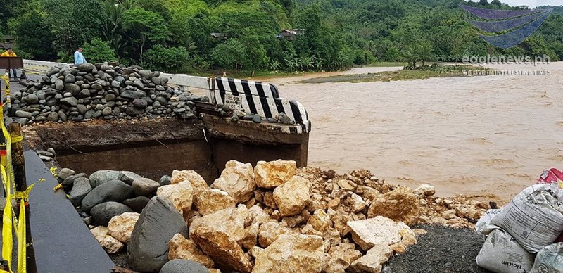 JABONGA, Agusan del Norte (Eagle News) — Dahil na rin sa nararanasang malakas at tindi ng buhos ng ulan na dala ng bagyong “Basyang” sa Agusan del Norte, gumuho ang kaliwang bahagi ng Puyo Bridge sa Barangay Bangonay, munisipalidad ng Jabonga.