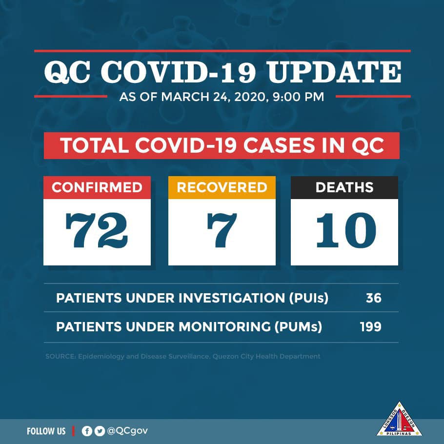 (Eagle News) — Quezon City has confirmed 72 coronavirus disease 2019 cases.