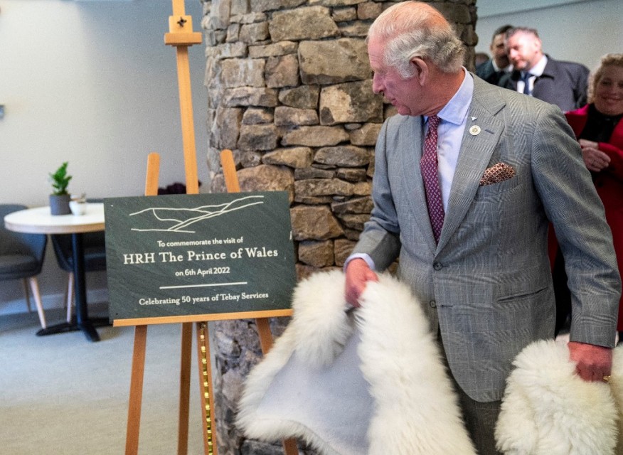Britain’s Prince Charles, Prince of Wales unvei’s a plaque during his visit to Tebay Services, on the southbound carriageway of the M6 motorway, near Tebay, north west England on April 6, 2022, to mark it’s 50th anniversary. (Photo by ARTHUR EDWARDS / POOL / AFP)