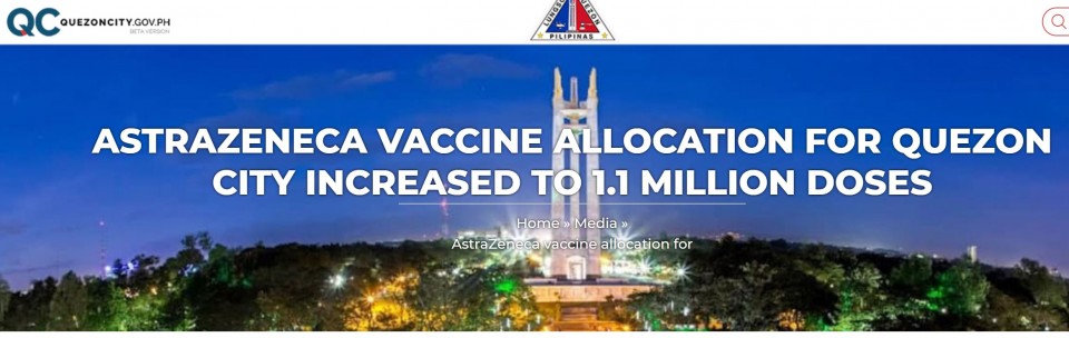 Quezon City announces securing 1.1 million vaccine doses from AstraZeneca