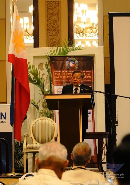 In the first National Forum and Public Consultation revisiting the 1987 Constitution, Puno explained the contents of the proposed constitution that pushes “radical changes” in the Constitution to allow for a federal-presidential form of government where both the President and the Vice-President will come from one political party, among other things.