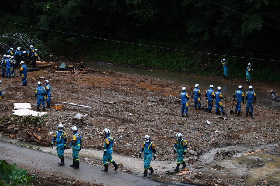 KUMAMOTO, Japan (AFP) — Torrential rain hampered the efforts of tens of thousands of rescue workers in southwestern Japan Monday as they hunted for survivors from deadly floods and landslides, with more downpours forecast.