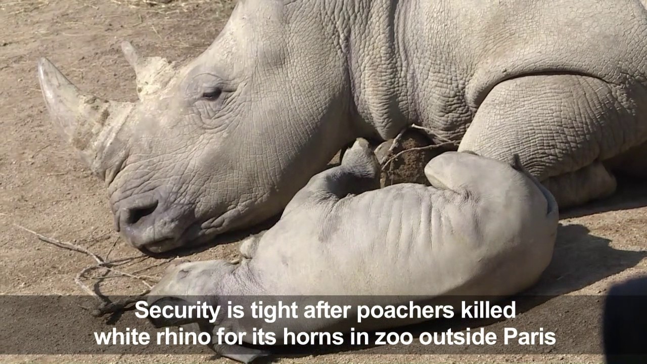 A rare white rhino named Timbo was born in the Amneville Zoo in northeastern France. He may be just nine days old but he already weighs 80kg. (AFP Video)