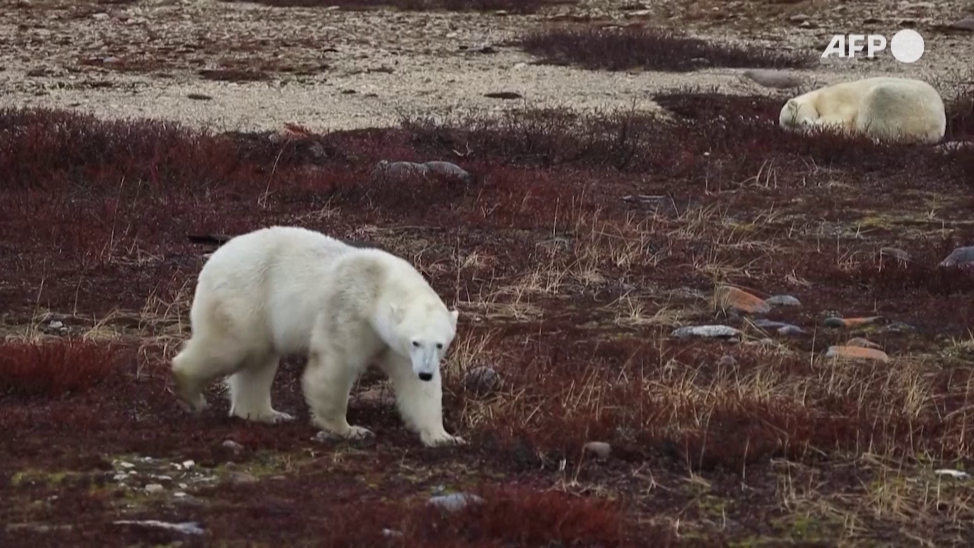 Churchill, Canada (AFP)– Sprawled on rocky ground far from sea ice, a lone Canadian polar bear sits under a dazzling sun, his white fur utterly useless as camouflage.