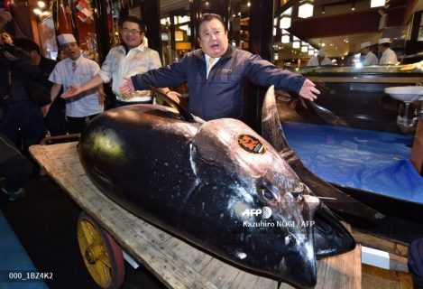 TOKYO, Japan (AFP) — A Japanese sushi entrepreneur paid a record $3.1 million for a giant tuna Saturday as Tokyo’s new fish market, which replaced the world-famous Tsukiji late last year, held its first pre-dawn New Year’s auction.
