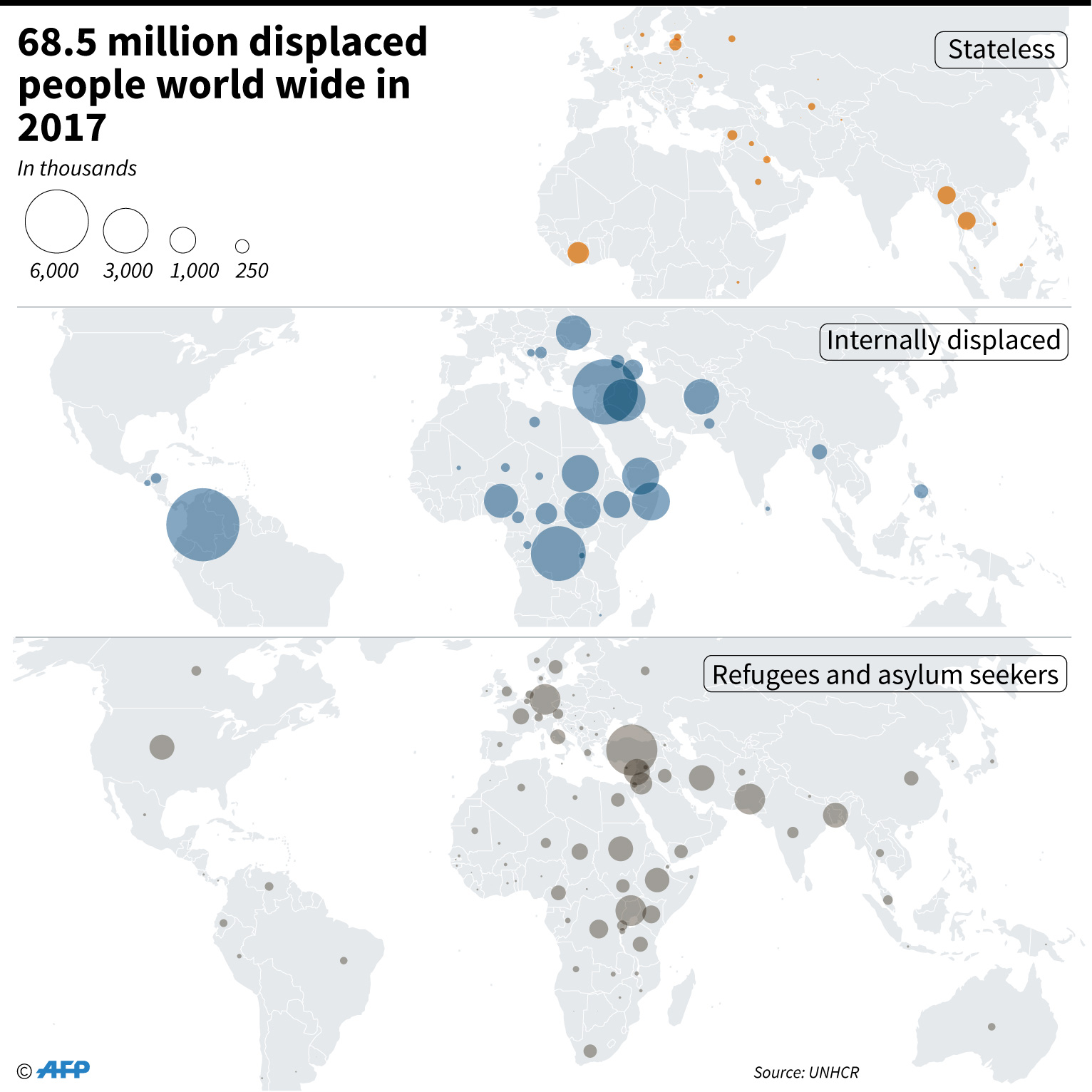 GENEVA, Switzerland (AFP) — A record 68.5 million people have been forced flee their homes due to war, violence and persecution, notably in places like Myanmar and Syria, the UN said on Tuesday.
