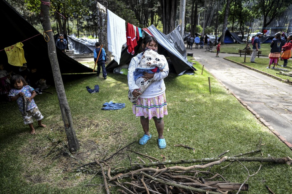 BOGOTA, Colombia (AFP) – Far from their ancestral homes, more than 1,000 indigenous people displaced by conflict have been squatting in squalor since September in one of the Colombian capital’s most emblematic parks.
