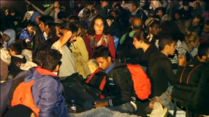 “Just, we want to walk. Let us going, let us walking,” said one man from Damascus. Refugees_say_police_blocking_their_way_as_they_head_for_Budapest_002