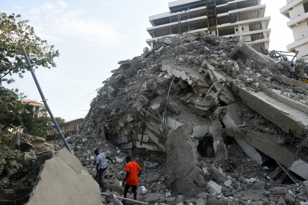 The 21-storey building was still under construction when it fell abruptly into a pile of concrete slabs on Monday in wealthy Ikoyi district of Nigeria’s commercial capital.