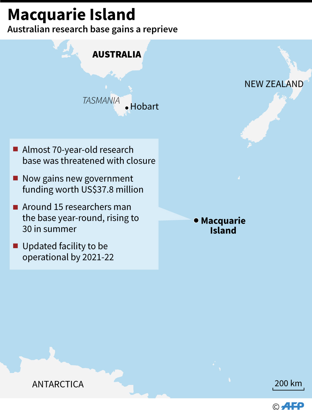 SYDNEY, Australia (AFP) — Australia’s permanent sub-Antarctic research base at World Heritage-listed Macquarie Island has won a reprieve from closure and will instead get a multi-million dollar revamp, the government said Friday, in a boost for science.