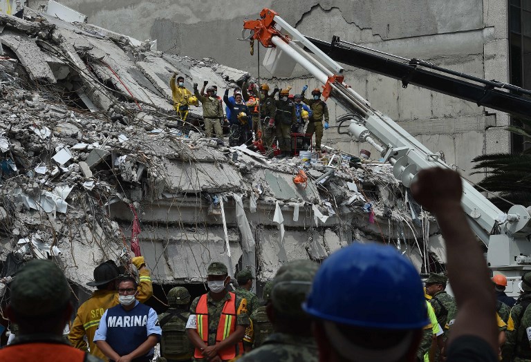 Rescuers frantically searched Wednesday for survivors of a powerful earthquake that killed more than 200 people in Mexico on the anniversary of another massive quake that left thousands dead and still haunts the country. / AFP PHOTO / RONALDO SCHEMIDT