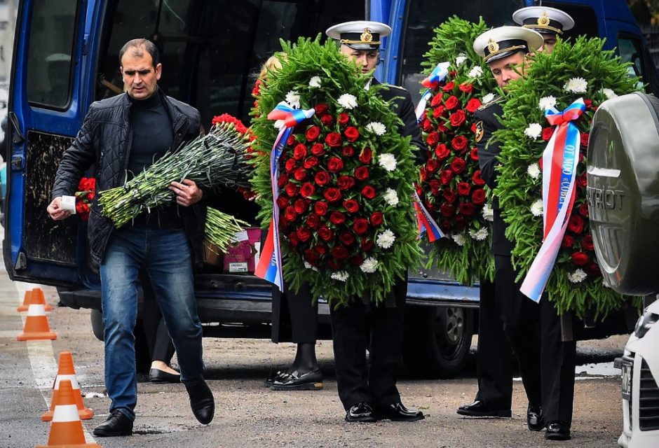 “This is a great sorrow,” said a young woman clad in black attending the ceremony. She held a wreath that read “from friends and classmates”.