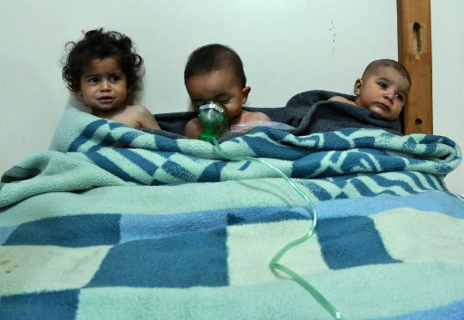 A child died and at least 13 other people suffered breathing difficulties after a suspected chemical attack on the besieged Syrian rebel enclave, a medic and a monitor said. The Britain-based Syrian Observatory for Human Rights said 14 civilians had suffered breathing difficulties after a regime warplane struck the village./ AFP PHOTO