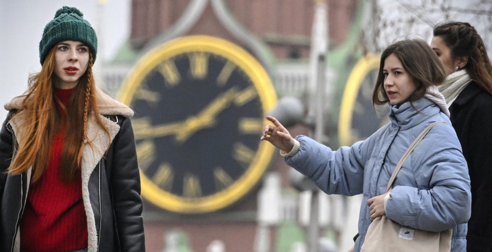 People walk past the Kremlin’s Spasskaya tower in downtown Moscow on November 10, 2023. – Inflation continued to accelerate in October in Russia, reaching +6.7% over one year, according to figures published Friday by the national statistics agency Rosstat, further eating away at the already undermined purchasing power of Russians. by the effects of sanctions and a weak ruble. The price increase reached exactly +6.79% year-on-year in October, compared to +6% in September, according to Rosstat, continuing its upward trend observed since the spring. (Photo by Alexander NEMENOV / AFP)