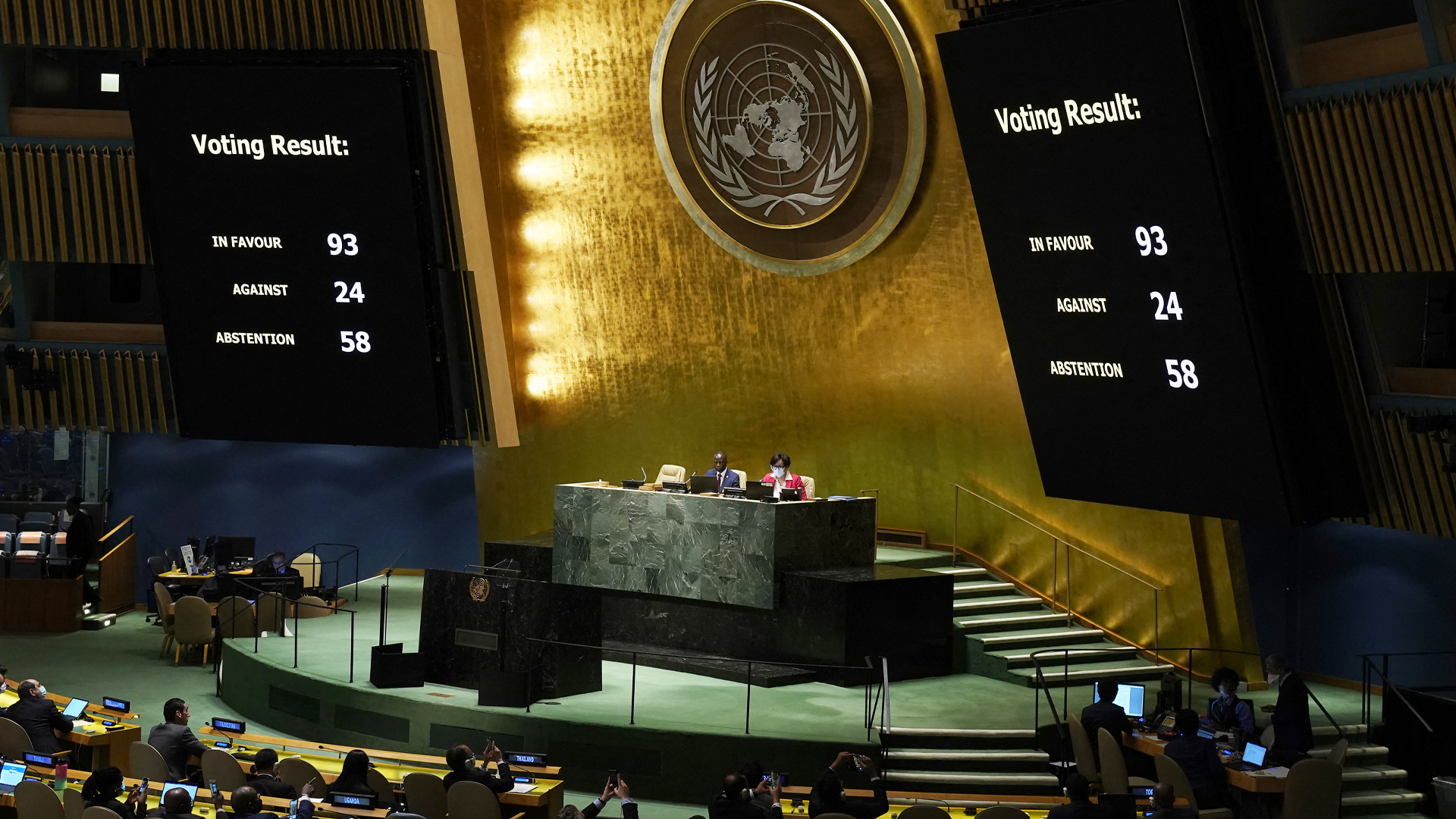 In New York, 93 countries voted to suspend Russia, with 24 against — well clear of the two-thirds majority required. Fifty-eight nations abstained.