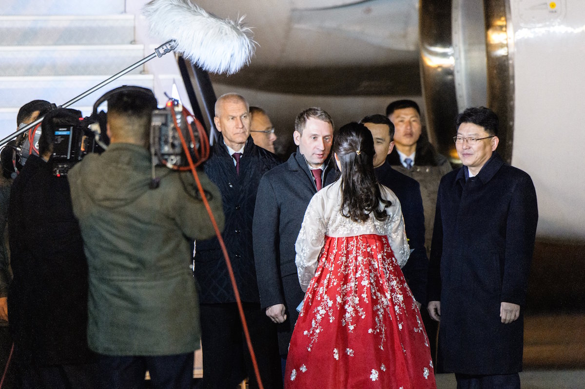 Russian and North Korean flags fluttered at the airport in Pyongyang as high-level North Korean officials saw the delegation off, KCNA said.
