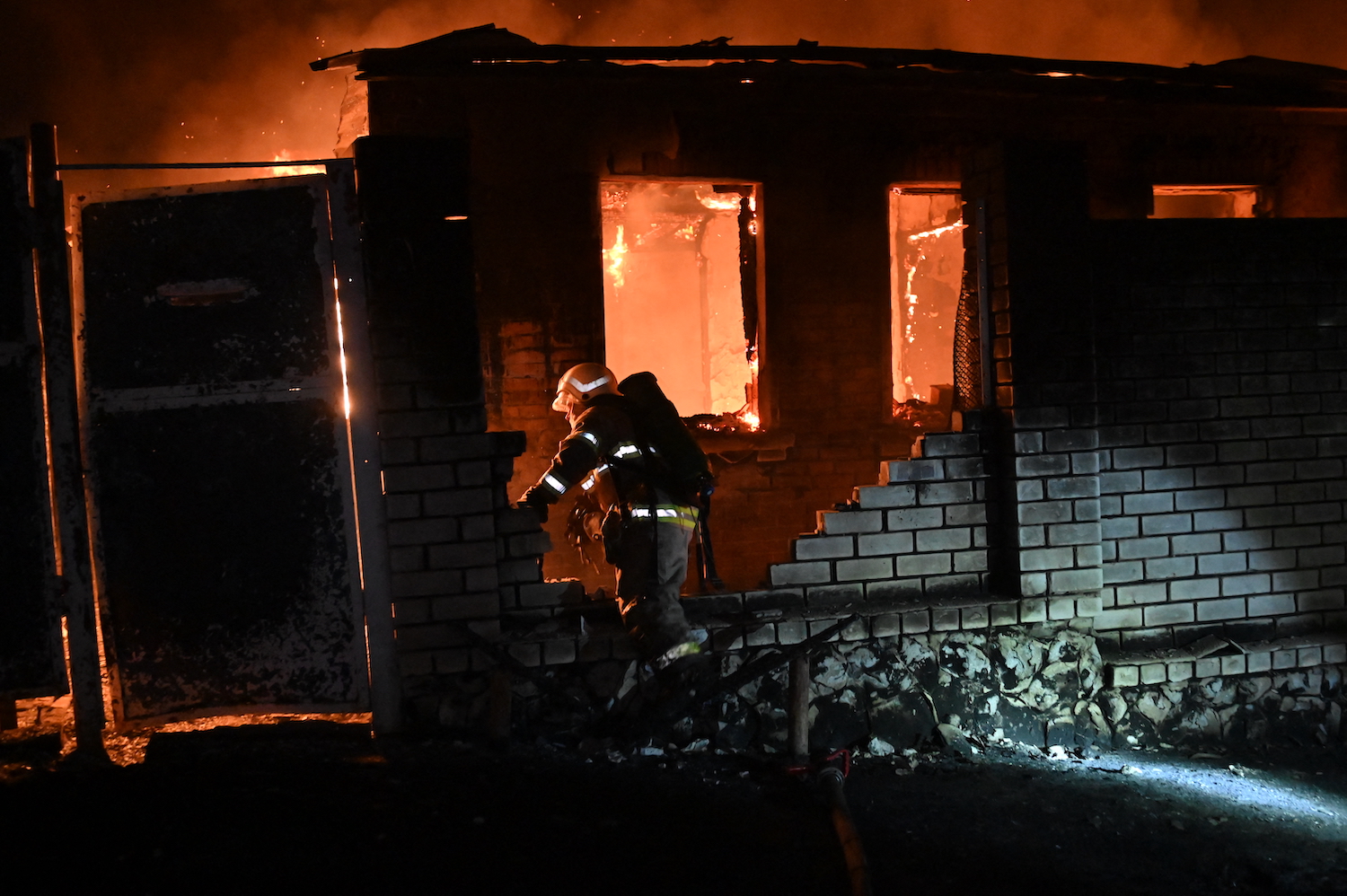 The attack with Iranian-made Shahed drones sprayed nearby homes with burning fuel, forcing at least 50 people to evacuate, Kharkiv mayor Igor Terekhov said earlier.