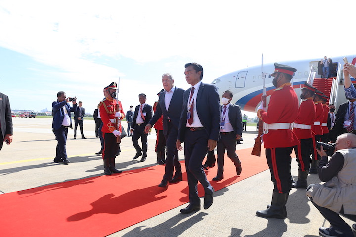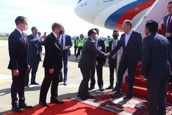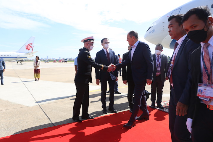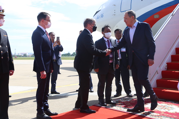 H.E. Sergey Lavrov, Minister of Foreign Affairs of the Russian Federation, arrives at Phnom Penh International Airport this morning to attend the 17th East Asia Summit and Related Summits hosted by Cambodia.