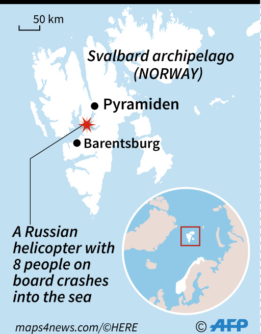OSLO, Norway (AFP) — A Russian helicopter with eight people on board crashed at sea in Norway’s Svalbard archipelago in the Arctic on Thursday, Norwegian rescue services said, with fears growing over the fate of those on board.