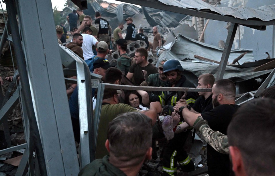 KRAMATORSK, Ukraine, June 28, 2023 (AFP) — The death toll from a Russian missile strike on a restaurant in eastern Ukraine rose to eight on Wednesday, as Kyiv played down the effect of a brief mutiny by the head of the Wagner mercenary group on the conflict.