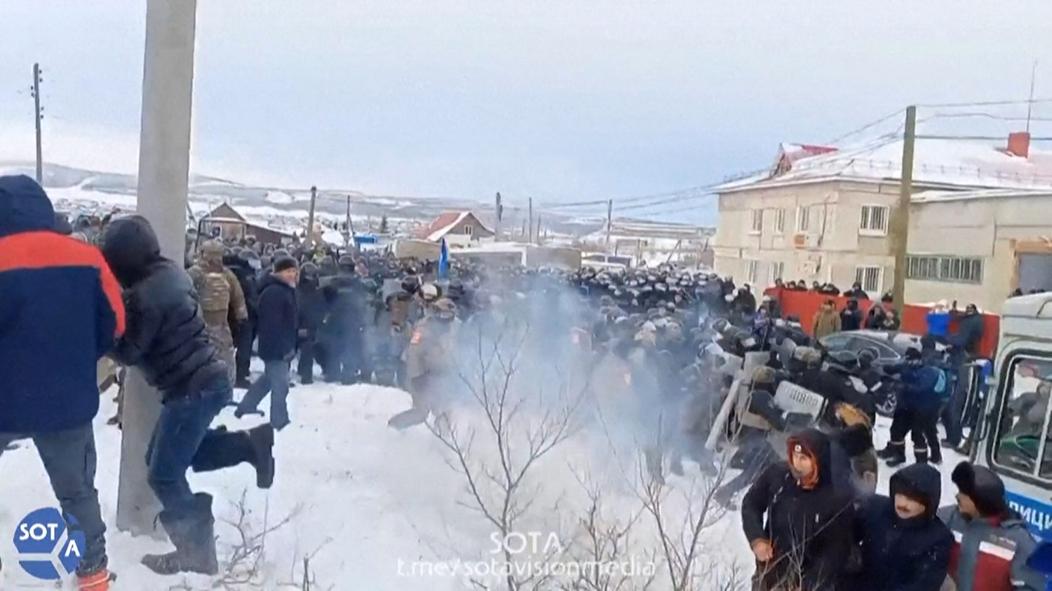 Crowds of men in the town of Baymak fought with riot police in temperatures hovering around -20 Celsius (-4 Fahrenheit), social media footage showed.