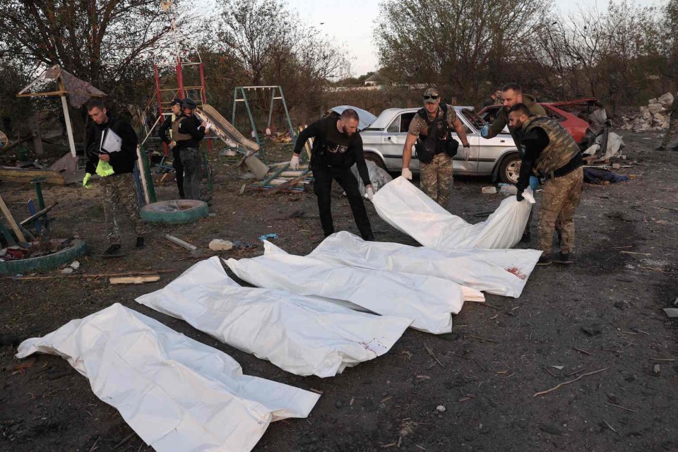 GROZA, Ukraine, Oct 5, 2023 (AFP) – A Russian strike killed at least 51 people gathered for a wake in an eastern Ukrainian village Thursday, provoking a wave of outrage from Western leaders for what a UN official called a “horrifying” attack.