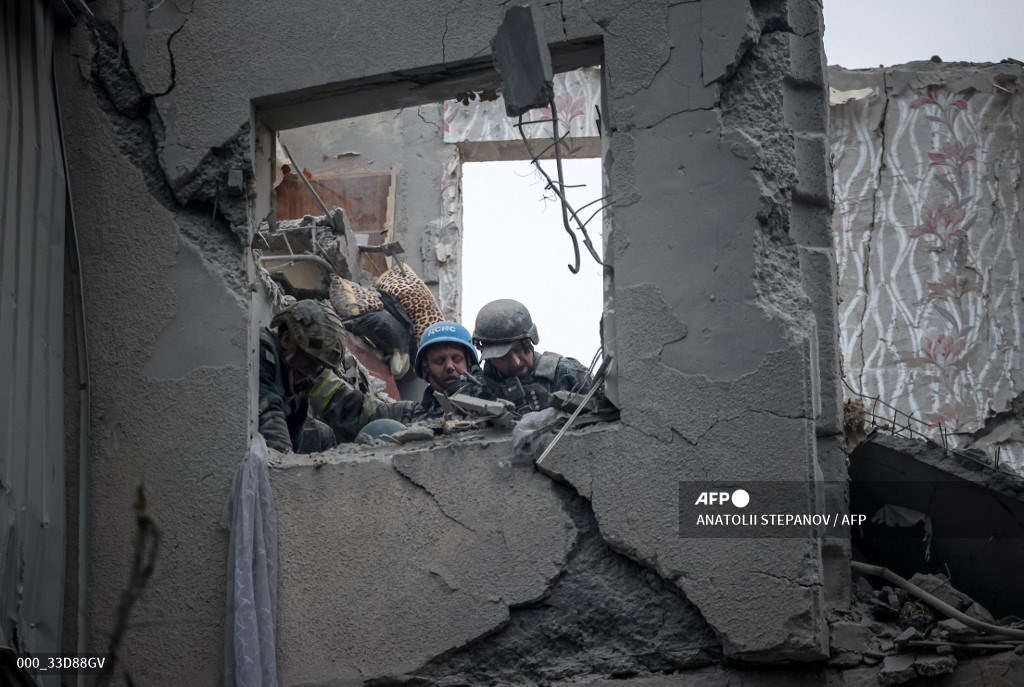 AFP journalists saw rescue workers digging for survivors on the top floor of the typical Soviet-era housing block, and black smoke billowing from homes on fire across the street.