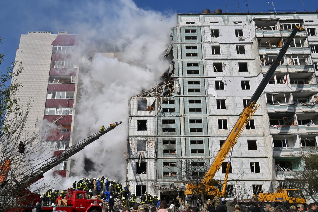 In Uman, a central city of 80,000 inhabitants, a video broadcast by Ukrainian media showed a gutted apartment building, rubble strewn around it.